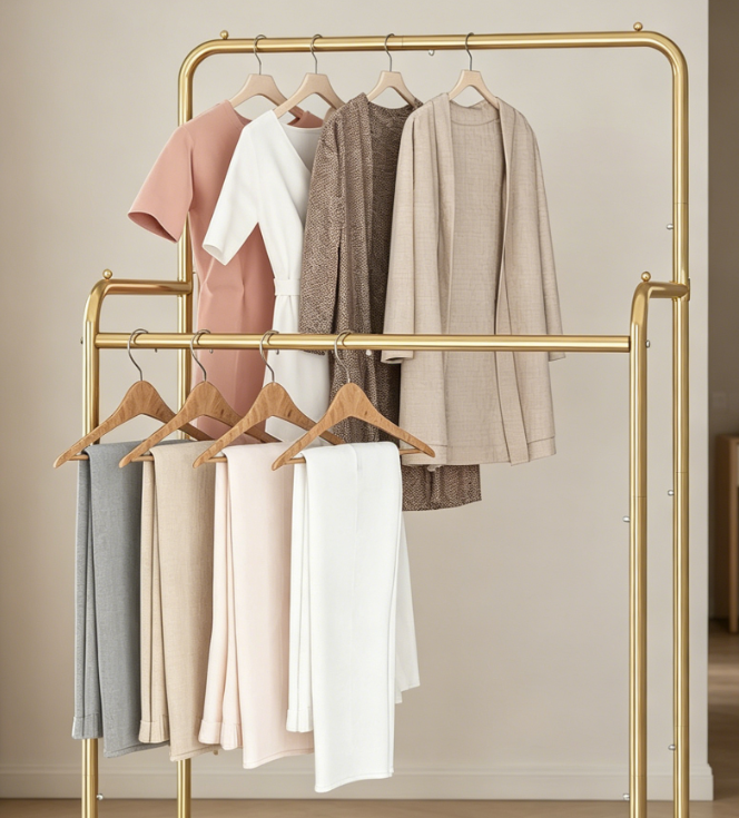Rolling Clothes Rack with Shelves and Side Rods, Freestanding Organizer