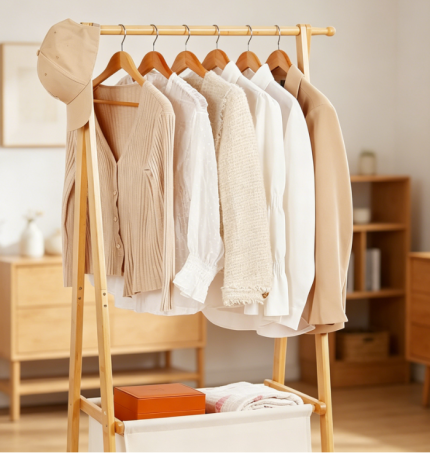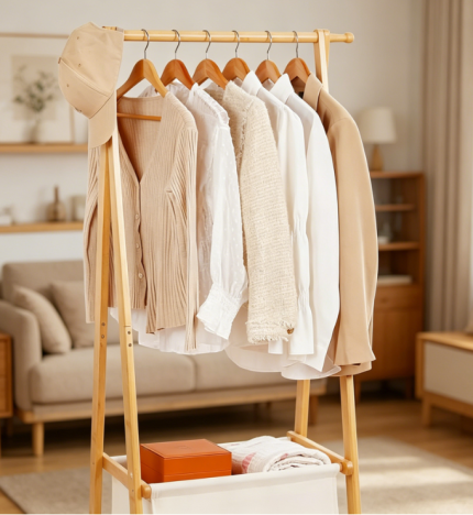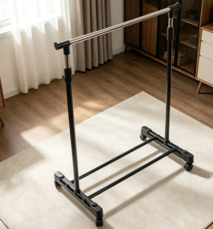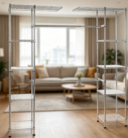 Double Rod Clothes Rack, Simple Metal Garment Organizer