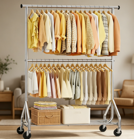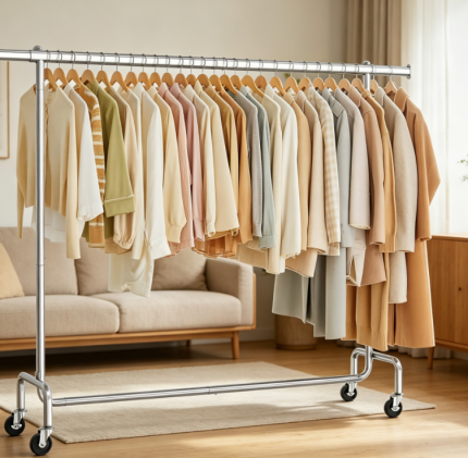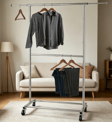 Extendable Clothes Rack with Wheels, Heavy Duty Metal Garment Rack