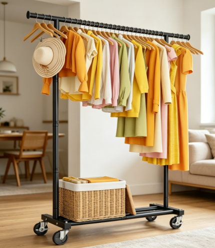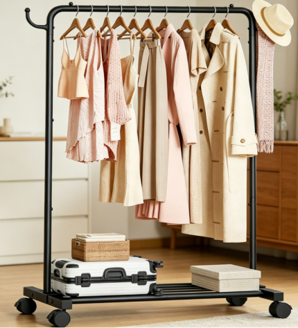 Industrial Style Metal Clothes Rack, Heavy Duty Garment Organizer